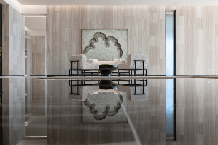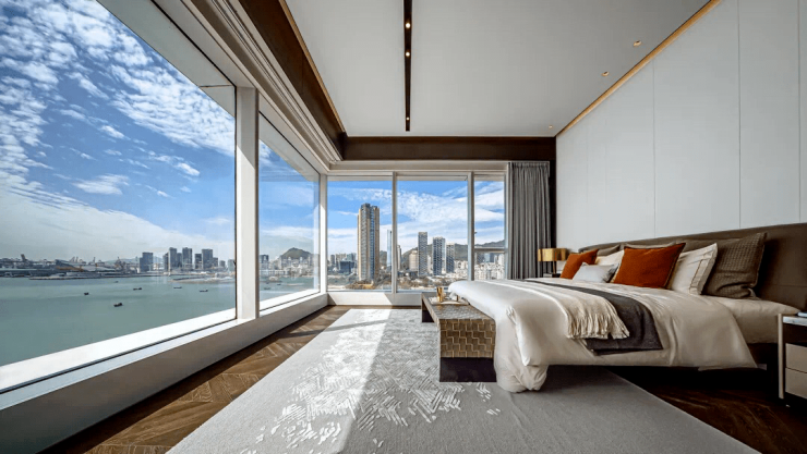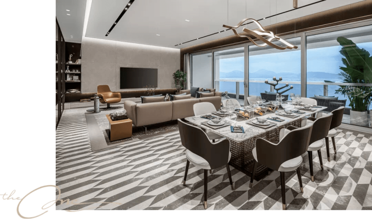 项目为15KM滨海长廊上盖物业,南侧为一线无遮挡海景,且西侧、北侧均拥有绝佳内湾海景,创造性地打造270°的环幕景观,演绎典雅精致的浪漫空间。