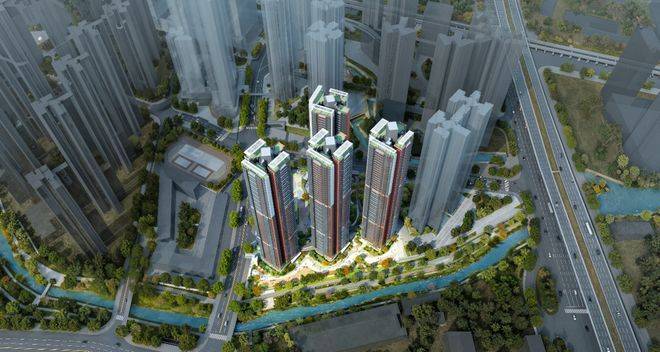 首期推出的05地块,是整个项目中位置最好的住宅组团。占地面积约1.91万㎡,总建筑面积约17.93万㎡,由4栋45-49层超高层住宅组成,共1142户,全部是纯商品房,没有回迁房和保障房混居,圈层比较纯粹。
