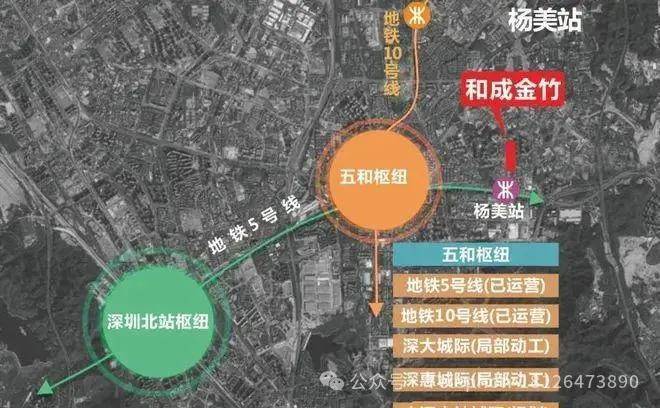 5号地铁线“扬美站”距离约200米,2站到“五和枢纽站”可以换乘10号地铁线/深大城际线,4站到“布吉枢纽站”可以换乘3/14号线,4站到“深圳北站枢纽”可以换乘4/6号线,还有高铁线路。