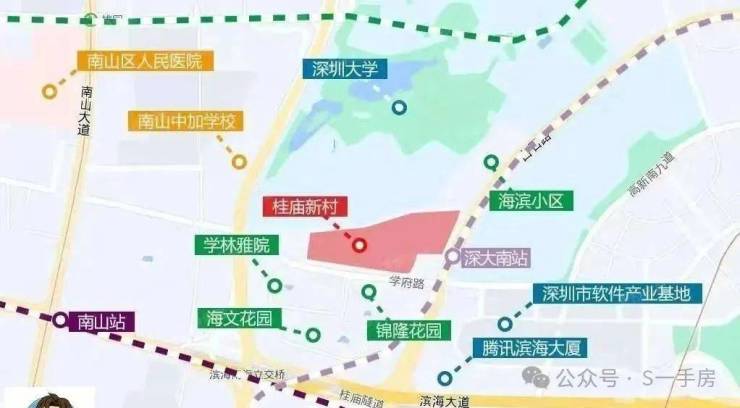 桂庙新村城市更新单元位于南山区粤海街道白石路与学府路交叉口西北侧,东临白石路,西近南海大道,南临学府路,北面与深圳大学毗邻。周边集聚了腾讯滨海大厦、软件产业基地等写字楼,地理位置优越。