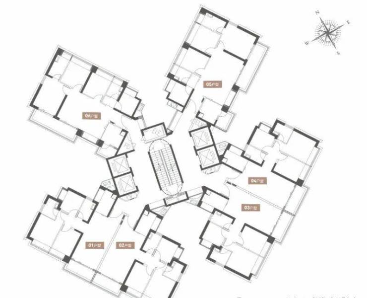 01-02户型116平3房2卫,03、05户型142平4房2卫,04户型120平3房2卫,4梯5户,层高3.1米;