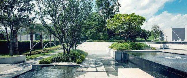 瀚府项目打造日式园林景观,布置有罗汉松、小叶紫檀等名贵树种,配置各式枯山水小景,游乐、休憩、眺望平台步入园林之中,形成一种独特的移步不一样的观赏动线,丰富业主未来的生活。