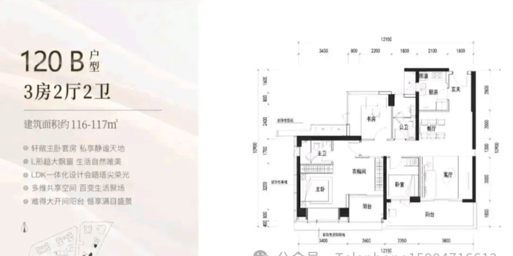 117㎡的3房2厅2卫,B户型(2栋4单元01.02.05/3栋2单元02/05户型),设计的是经典竖厅格局,客厅3.8米开间,LDKB一体化设计,3个卧室分别做到了主卧28.6㎡/次卧9.6㎡/次卧7.05㎡(包含墙体飘窗),客厅连接次卧出6.15米长的宽景大阳台,U型厨房,卫生间干湿分离,得房率约90%(包含赠送),东南或正东朝向。其实也可以改4房。