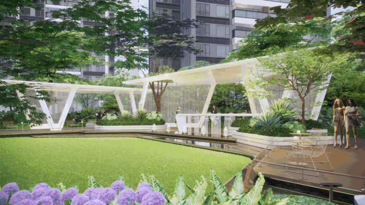 社区打造方面,天健和悦府总建筑面积约33万平方米,采用东西双围合式布局,充分发挥方正的地块优势,通过较宽的楼间距,创造大尺度花园空间,保证每栋住宅都能够拥有较好的可视景观。同时,项目园林以“精品住宅社区”+“现代都市花园”理念,通过中央阳光剧场、户外会客、童趣乐园、活力健身、悦心庭院、百变魔方六大核心价值空间打造理想的新时代都市花园社区。此外,在项目东地块还设计了屋顶花园,设置有乒乓球、羽毛球场、活力健身等功能场地。