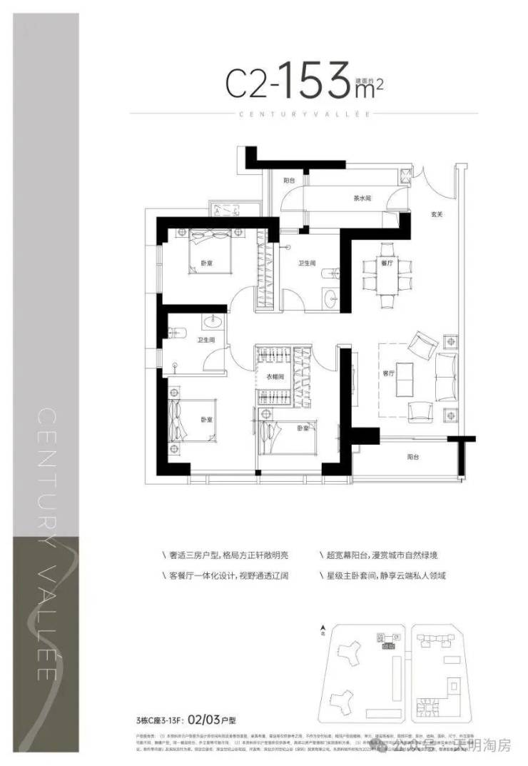 C2户型——建面约153㎡3室2厅2阳台