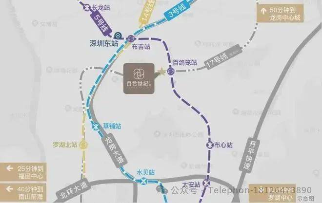 毗邻主干道,离龙岗大道仅约1公里,离丹平快速仅约2.5公里,近距离连接北环大道、水官高速,快速通达全城各片区,5号地铁线“百鸽笼站”就在家门口,3/5/14号地铁线以及高铁线路交通枢纽“布吉站”约500米。