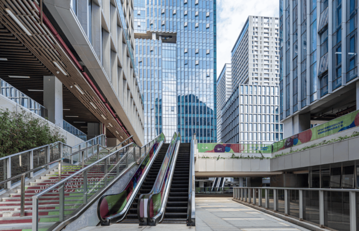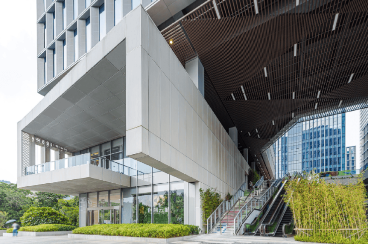 在以往高容积率产业园的生态开放、多层地表等设计理念的基础上,留仙洞创智云城1标段的设计,开始关注企业的全生命周期发展,摒弃单纯追求建筑形式的设计,力求设计回归到需求的本质。从使用者和企业的需求出发,以满足不同企业在不同发展阶段的基本空间需求为出发点,创造一个功能复合、多样生活的科技创新产业城区。