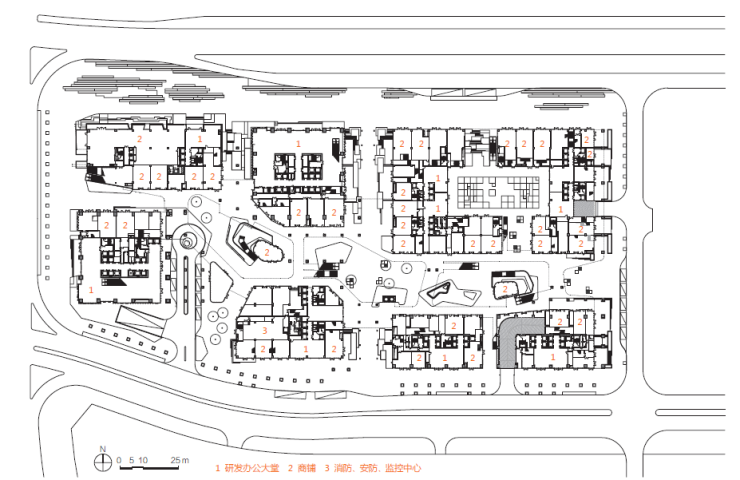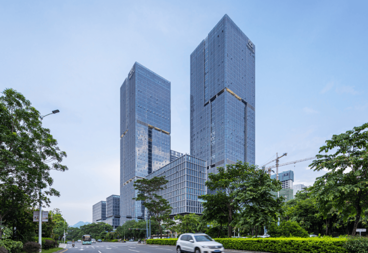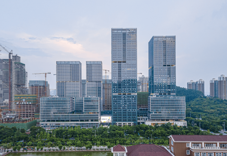 该项目总用地面积为137 300 ㎡,计容总建筑面积为100 000 ㎡,其中1标段用地面积为32 140 ㎡,建筑面积为411 913 ㎡,包含研发、公寓、商业及公共配套等多项功能区。在经过深圳湾科技生态园一区的实践后,设计团队再次面对高密度产业空间的设计任务,尝试通过空间、功能、场景的多重塑造,满足企业的人本需求,从而促进企业的全生命周期发展,并进一步形成产业链的聚集经济效益。