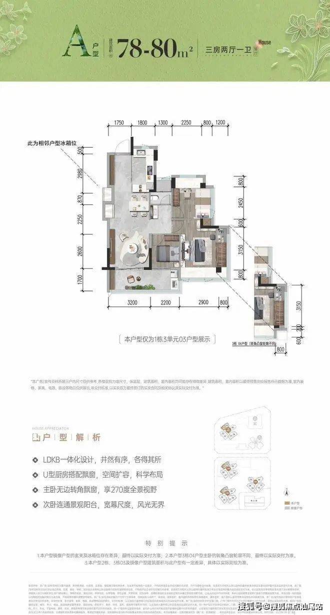 首次推首北地块1栋3单元,约80-92㎡ 3房,共195套,新规使用率高达96%-105%!