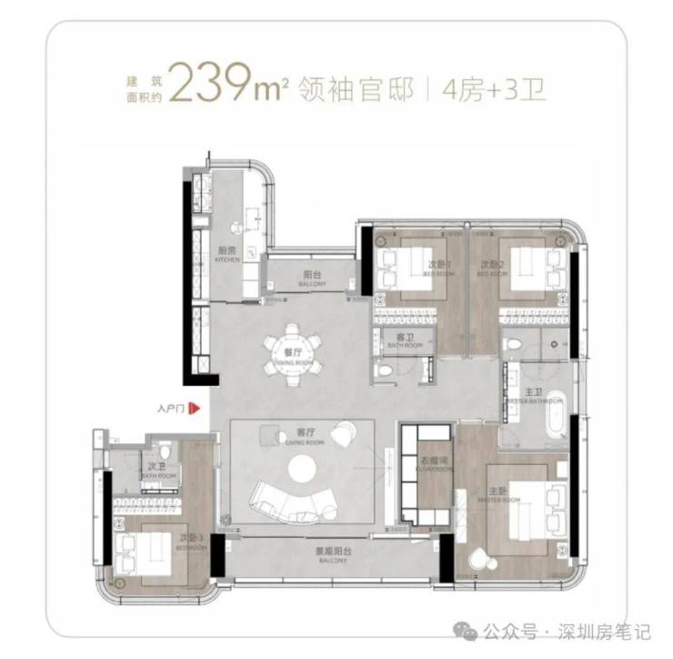 T9/T10栋:总高53层,4梯3户,183-270㎡4房及270㎡复式。