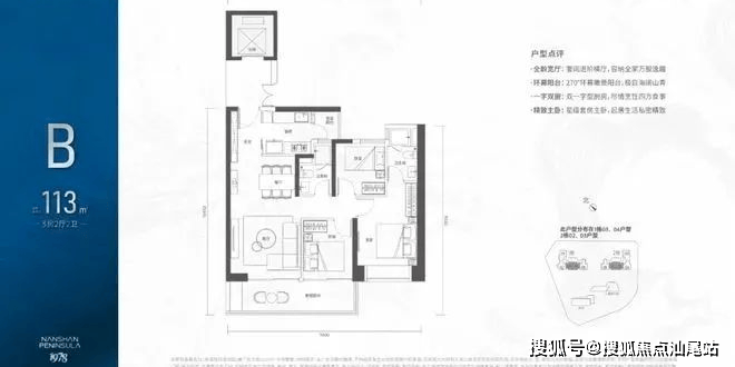 113㎡的3房2厅2卫:位于2-30F,全朝南向,带6.5米宽大阳台。