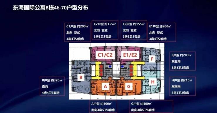 项目总占地 3.6 万平米,总建筑面积 50 万平方米,是东海集团倾力打造的城市地标式综合体。项目由两栋国际甲级写字楼、一座国际五星级酒店,两座摩天公寓及商业组成。两座公寓最高层单位分别A座82层308 米、B座75层 275 米,是亚洲第一高纯公寓。