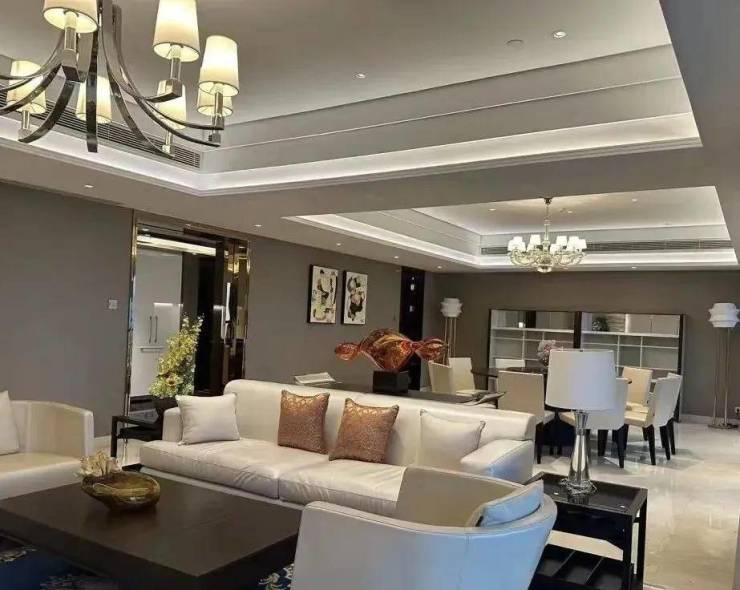 自身也打造的颇为奢华,仅入户大堂处水晶灯组合就价值上千万,还有150米高空处恒温天际泳池、空中会所、空中园林等。