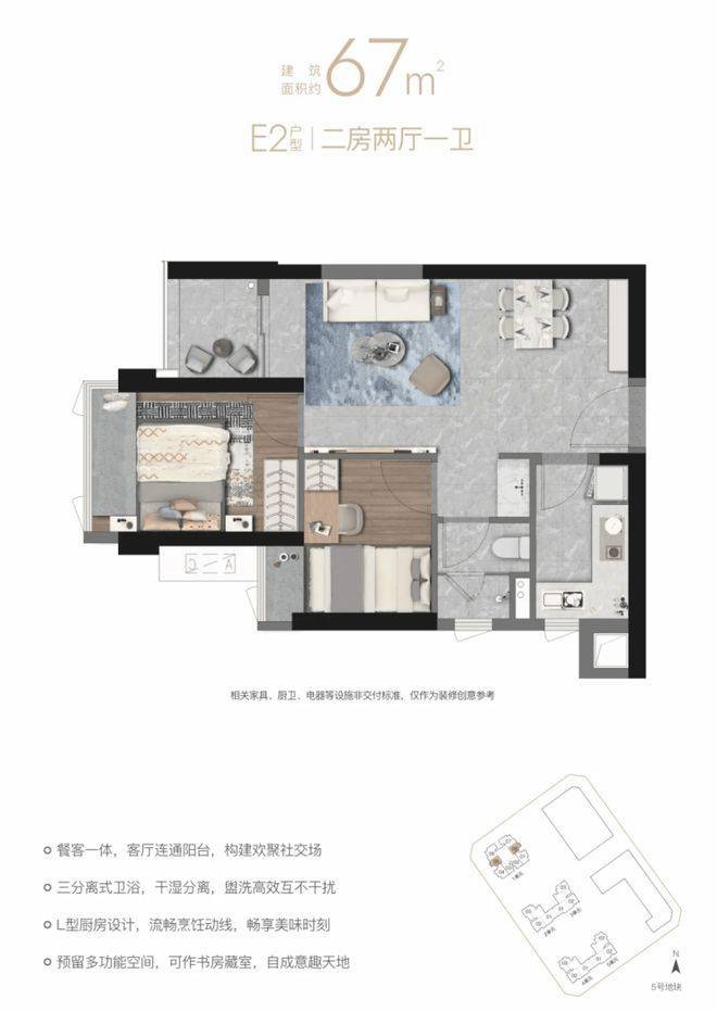 塘城壹号花园,项目即将于2025年上半年开盘入市,本次开盘主推建面约67-87-96-117-125㎡的2-4房住宅产品。其中建面约67㎡的2房产品是片区比较稀缺的上车户型。
