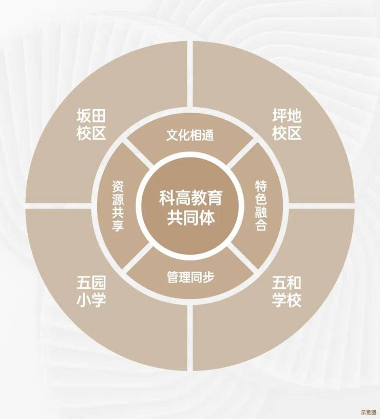 小学学区划分在科学高中五和实验学校,中学学区划分在坂田实验学校初中部、扬美实验学校初中部、深圳实验坂田校区初中部、科学高中五和实验学校初中部。