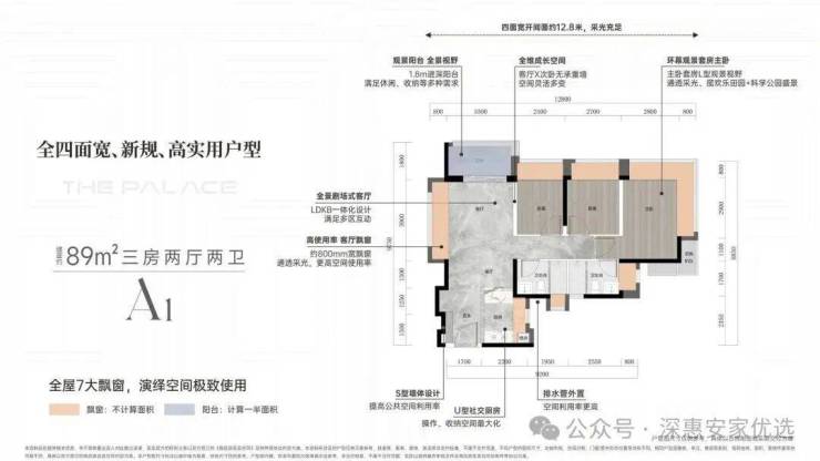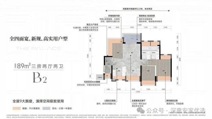 111-112㎡3房2厅2卫,新推户型,纯正三房,竖厅户型。