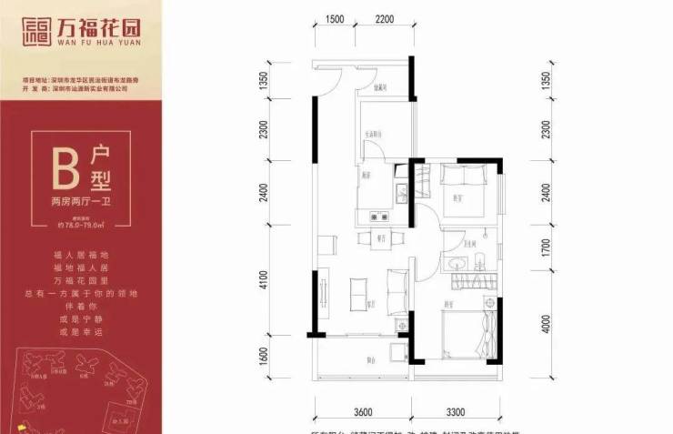 78㎡ 2房2厅1卫,B户型(1/2栋02.05)