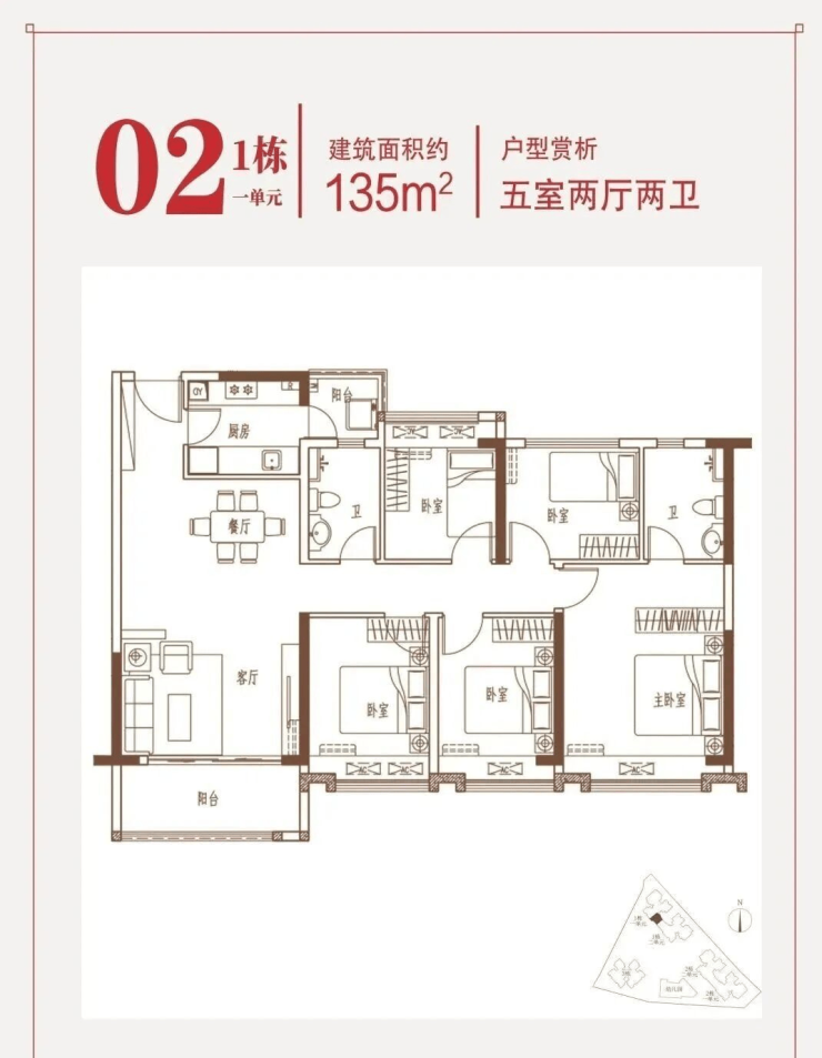 💎约135㎡五房:区域唯一同面积段5房,南北通透,花园中间更安静,北面看山南面看海。