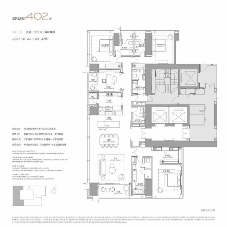 可定制茶轩、书房或雅致客居,主卧看海景带独立衣帽间。