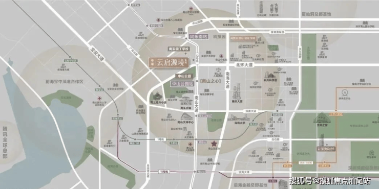 【中海云启源境】处在南山与宝安交界处的南头片区中山公园北,即北环大道以北,南海大道以西,平南铁路以南,项目与周边环境相对独立,与豪方天际相邻。