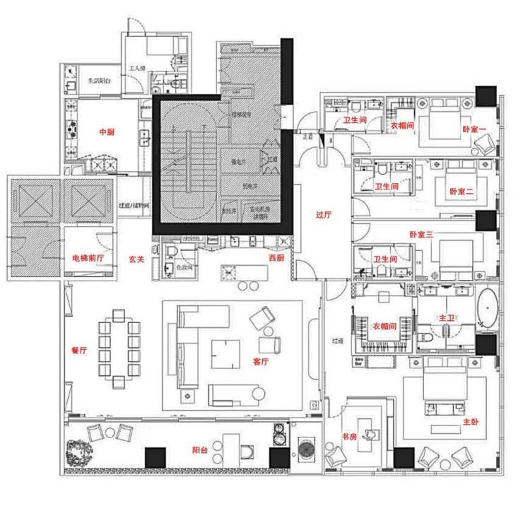 总的来说这个305平方的大平层适合任何群体的家庭居住,无论你是二胎,三胎还是三代同堂,都可以完全你们的居住
