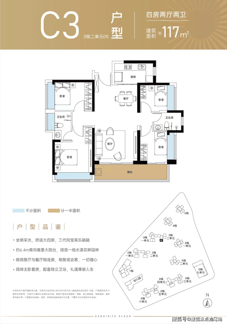 ,得房率:72.06%(不含赠送),约6.4米长的超大阳台,正南朝向看花园景观。