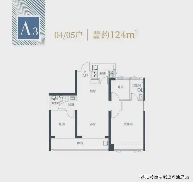 1栋一单元A3户型:面积约为124㎡