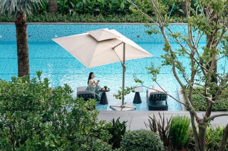 约2.3万㎡围合式园林,设计有可开Party的新加坡式度假泳池、景观会客厅、儿童乐园、阳光草坪、健康跑道等丰富设施,以人均约11㎡园林面积,满足从幼童到老人的全龄生活需求,也让中产主人在小区就拥有完备的社交场景。