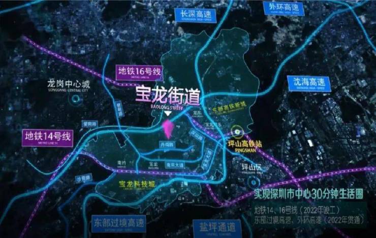 时速最高达120km/h的地铁14号快线已开通,宝龙站三站大运,10站抵福田。家楼下的公交始末站,东部过境、坪盐通道、南坪快速等多条高速路免费通达全城程,东部高铁枢纽半小时大湾区都市圈。