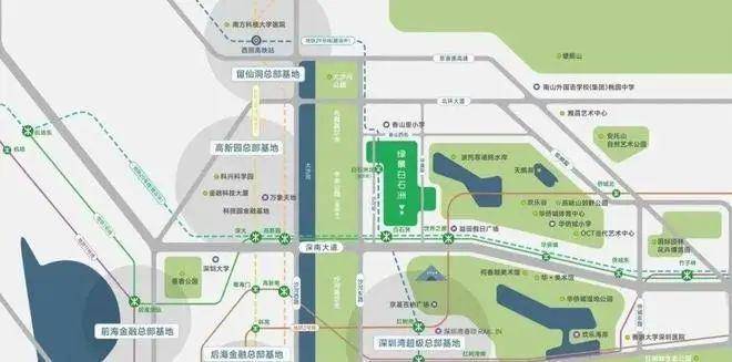 绿景白石洲位处深圳 gdp 首区南山区的核心地段,深南大道横轴和大沙河科创走廊纵轴交汇的超级十字轴心,链接四大总部基地,聚合城市发展能量,为未来总部基地规划的精英技术人才打造高端生活配套区,代言深圳价值高度。
