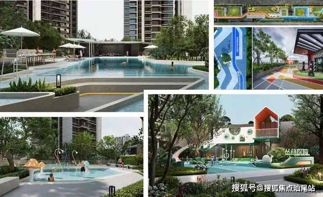 约1.6万㎡静谧花园:超大规模园林,打造一个功能复合化&多维立体的园林景观,摩登泳池、森系儿童乐园、四季隐形轻氧跑道等多功能场所。