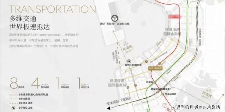 地理位置优越:项目西临妈湾二路,北临听海大道,东接前湾水廊道及河岸公园,南面步行约450米可达地铁5号线妈湾站,交通便利。