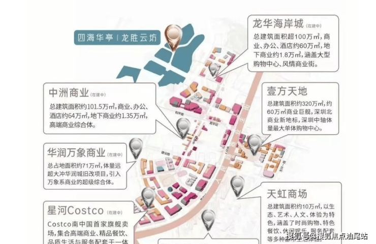 商业配套:华侨城龙胜村旧改项目,自身配套商业面积合计约5.11万㎡,未来投入运营后,有望取代龙华中心城片区现有的一些低端商业街及传统百货商场,成为中心区继“壹方天地”之后的又一网红购物休闲娱乐打卡地。