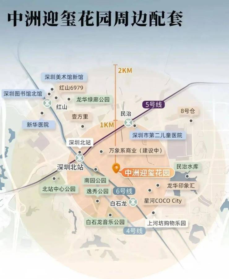 项目原中洲黄金台,定名为中洲迎玺花园,位于龙华民治街道,西北毗邻中海珑悦理家园,东北毗邻超核中心润府。