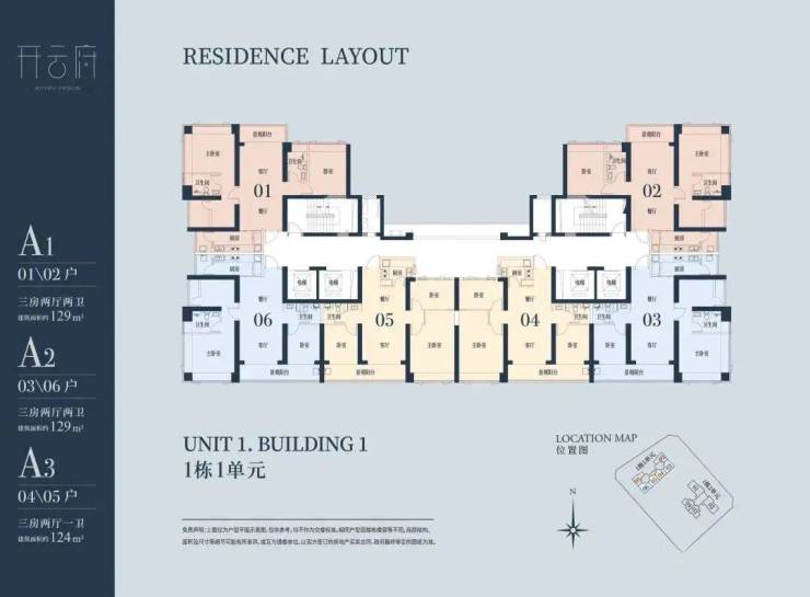 开云府户型为124-129-133㎡三房以及203㎡四房,单价5.5~6.5万/㎡。