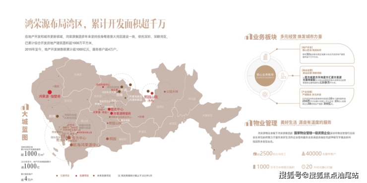 鸿荣源,城市地标缔造者,与城市共荣,汇集鸿荣源32年匠心精铸,传承“誉”系精工品质,携超能标杆钜作,献礼湾区,鸿荣源32年稳健发展、布局大湾区,累计综合开发建筑面积超过1000万㎡。