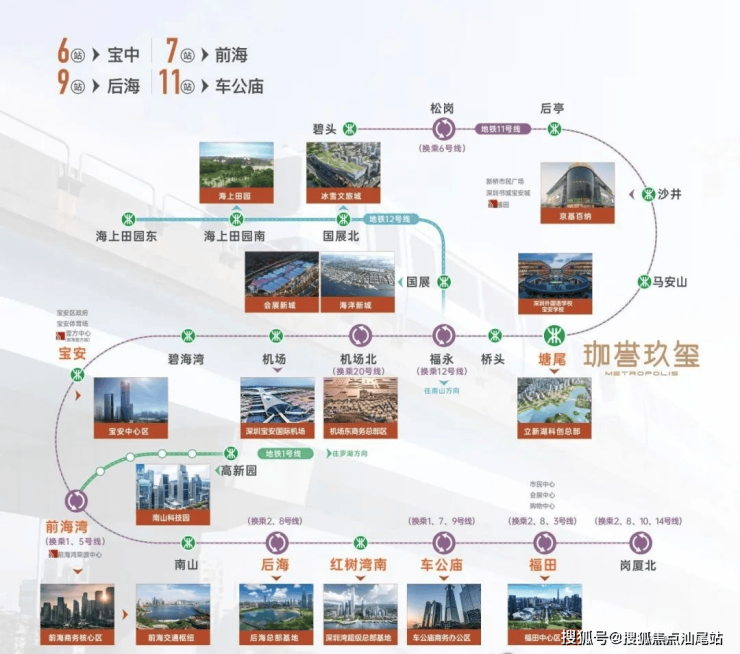 7站即达前海交通枢纽(在建中):是亚洲第一、世界第四大地下交通枢纽换乘站,预计日客流量达到75万人次。