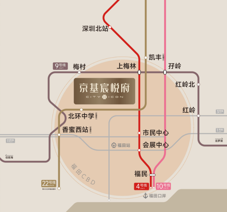 福田中心【京基宸悦府】双地铁口+四轨交汇+一横两纵+深港畅行