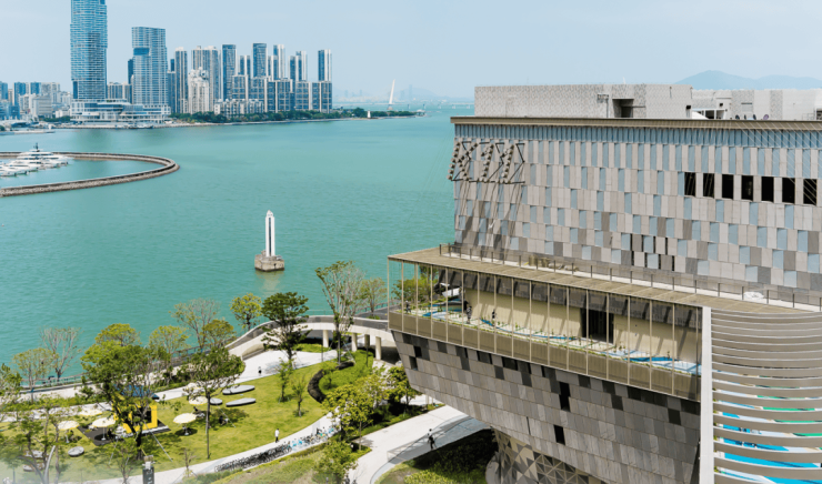 由纽约顶级建筑事务所SOM执笔,以“海浪蚀刻”为灵感,全玻璃幕墙搭配流线型铝板,昼夜光影流转,成就深圳湾天际线新封面。
