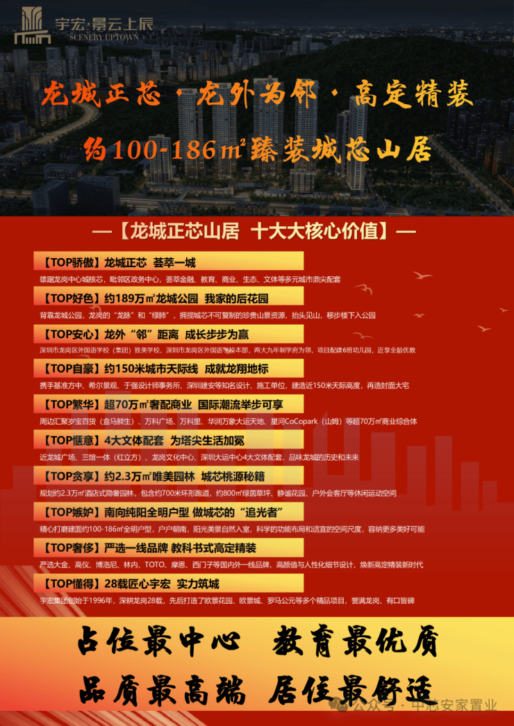 宇宏·景云上辰雄踞龙岗中心城正中核芯,毗邻区府政务中心。荟萃金融、教育、商业、生态、文体等多元城市顶尖配套,享永不落幕的发展红利。