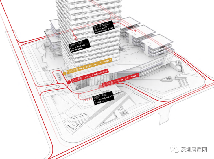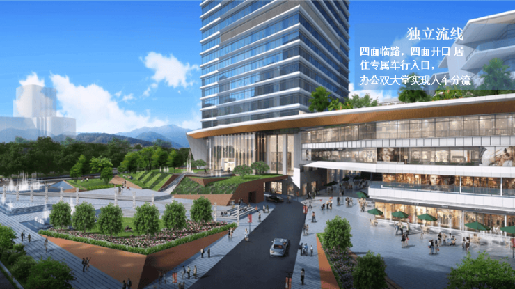 居住、办公空间独立入户大堂及车行入口,互不干扰