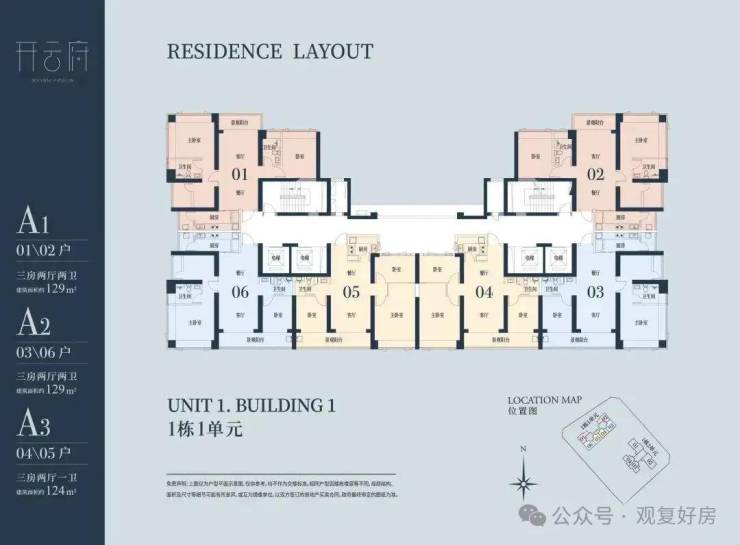 🔹124㎡的3房2厅2卫:设计的是双龙抱珠格局,客厅超大观景阳台,东南朝向,缺点有黑卫,小卧室对天井外走廊采光。