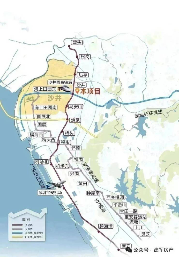 地铁直达:约300米(直线距离)11号线沙井站,6站直达宝安机场,8站宝中,9站前海