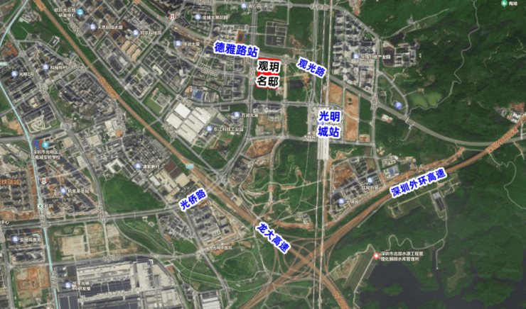 项目交通便利性突出,实现"三轨三高速"立体交通网络。距离在建的13号线德雅路站仅100米(预计2026年中开通),7站直达南山科技园等核心区域;1站可达光明城站,换乘6号线支线二期(2025年年内开通)及广深港高铁、赣深高铁,30分钟直达香港西九龙、广州等城市。