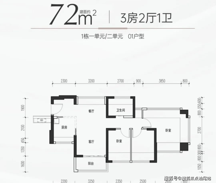 72㎡的3房2厅1卫,设计的是竖厅南北通透格局,进门独立玄关,LDKB一体化,主卧270°飘窗设计,L型厨房,卫生间干湿分离,得房率约100%(包含赠送),阳台主朝东北向。