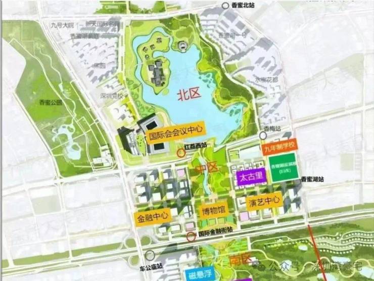 香蜜湖新金融中心规划总建面超230万平方米,分为北区、中区和南区,其中包含国际金融中心,改革开放展览馆,国际演艺中心,博物馆,同时引进深圳首家重奢商场——太古里/太古汇,对标伦敦金融城和纽约曼哈顿金融区,致力于打造成深圳“城市新客厅”和“新金融中心”。