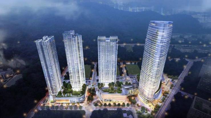 项目建面约32万㎡,双地铁上盖,集住宅、五星级酒店、商业、商务总部等5种复合业态于一体。