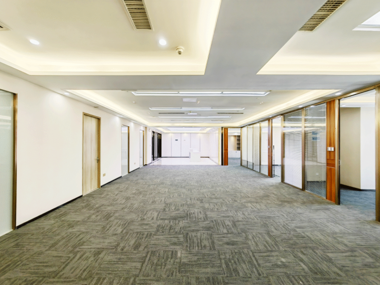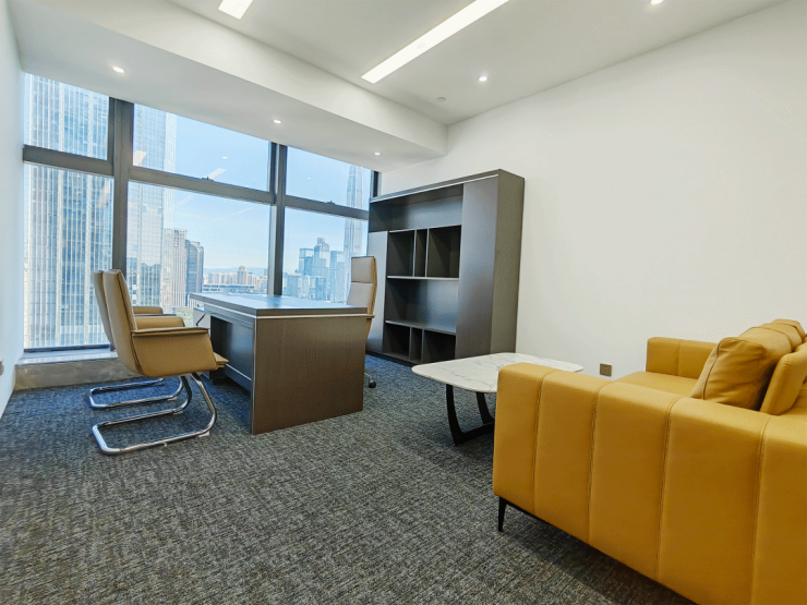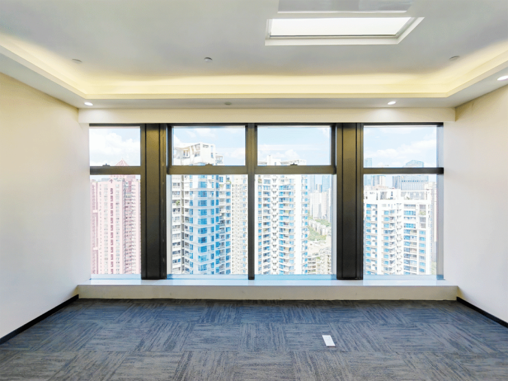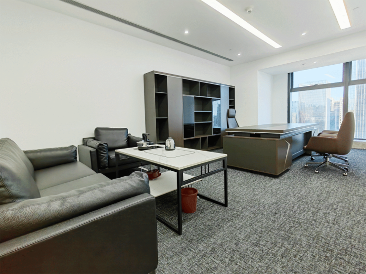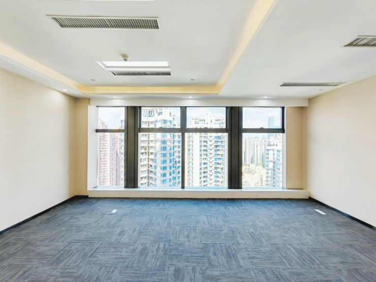 每间办公室都设有双层中空LOW-E玻璃幕墙,保证采光通透明亮的同时还能隔绝外部噪音。最让人心动的是每间办公室都能看到市中心的景观,窗外望去,大面积绿植映入眼帘;平安金融中心、市民中心近在咫尺,还能眺望大中华片区,视野非常开阔。在这么敞亮舒适的地方办公,不仅心情舒畅,办公效率也能提高不少呢。