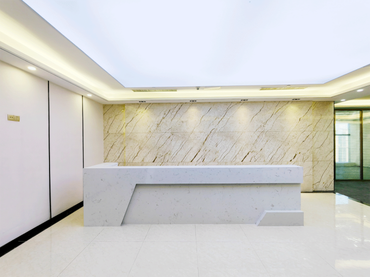 一入门,便看到前台使用了超3米长的大理石,天然的纹路与背后的墙面设计相得映彰,让整个办公空间舒适无比,美观兼具实用,提升了整个装饰的档次,高端大气上档次。富德生命保险大厦写字楼招租电话:400-088-3336(招商中心)