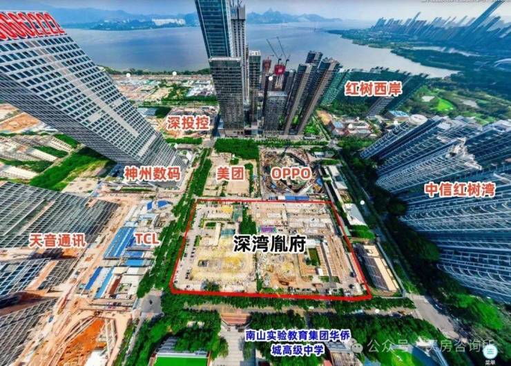 地块北面是深圳市南山实验教育集团华侨城高级中学,西面是中信红树湾,南面是深圳湾超级总部基地城市展厅、深铁万科瑧湾汇,东面是TCL、神州数码等总部大厦....配套都是顶配的,但也因周边遍布了豪宅、总部大厦,看海的视角或会被遮挡。
